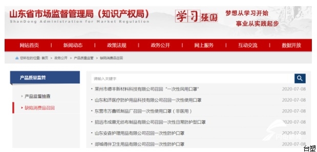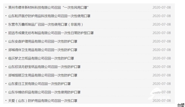 首頁 > 行業新聞 > 文章內容山東省市場監管局今天發布消息,按照消費品缺陷召回有關規定,山東35家口罩生產企業召回一次性非醫用口罩,召回口罩數量375302只。