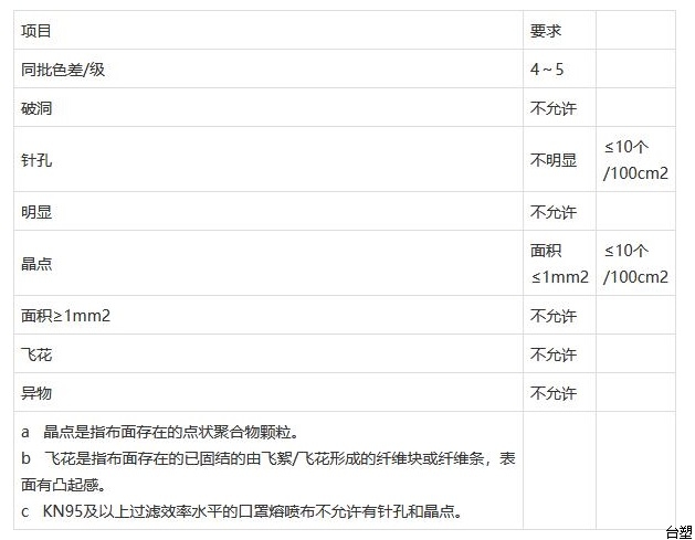 用于口罩的熔噴布,其專項技術要求應符合表3的規定。