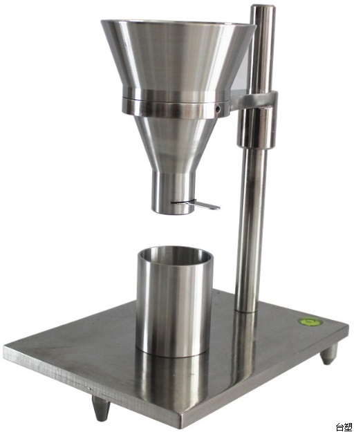 塑料表觀密度儀測(cè)試步驟:首先用擋料板擋住漏斗底端出料孔,然后倒入漏斗115±5 cm3左右的樣品。將漏斗底端快速打開(kāi),讓樣品自由地流進(jìn)量筒中心部位。待所有樣品都流出后,用刮板刮去量筒頂部多余樣品,其間請(qǐng)不要振動(dòng)量筒。將量筒及刮平后的樣品放到精度為0.1克的電子稱(chēng)上稱(chēng)量。計(jì)算出該物量的表觀密度,單位為g/ cm3